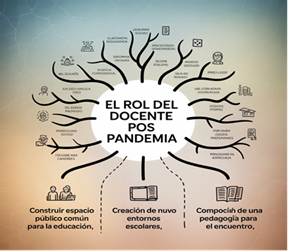 En el discurso de escenarios emergentes, todo espacio provee elementos claves de enseñanza aprendizaje; pero no significa “suplantación”. Lo que se aprende en la escuela (espacio físico) va mucho más allá del lugar como tal; pues incluye interacción social, debate público, contradicción, convivencia entre iguales, construcción colectiva, y esto no se aprende en el hogar. El rol del maestro postpandemia lo conduce luego, a la construcción de un espacio público para la educación.